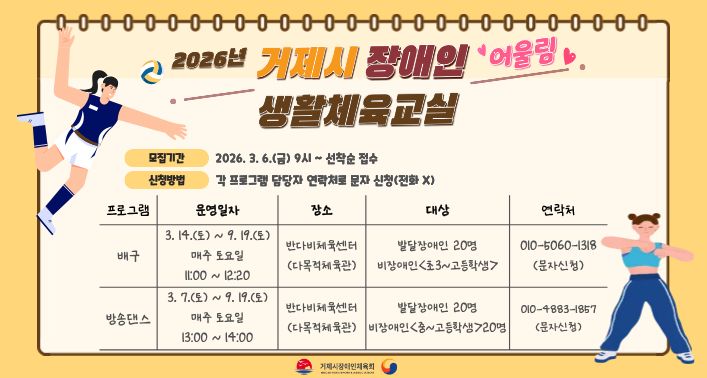 2026년 거제시 장애인 어울림 생활체육교실