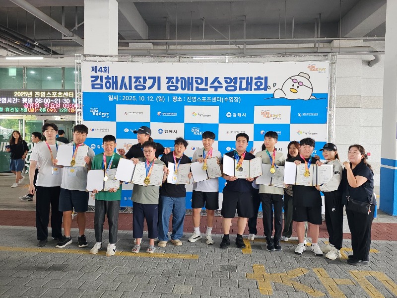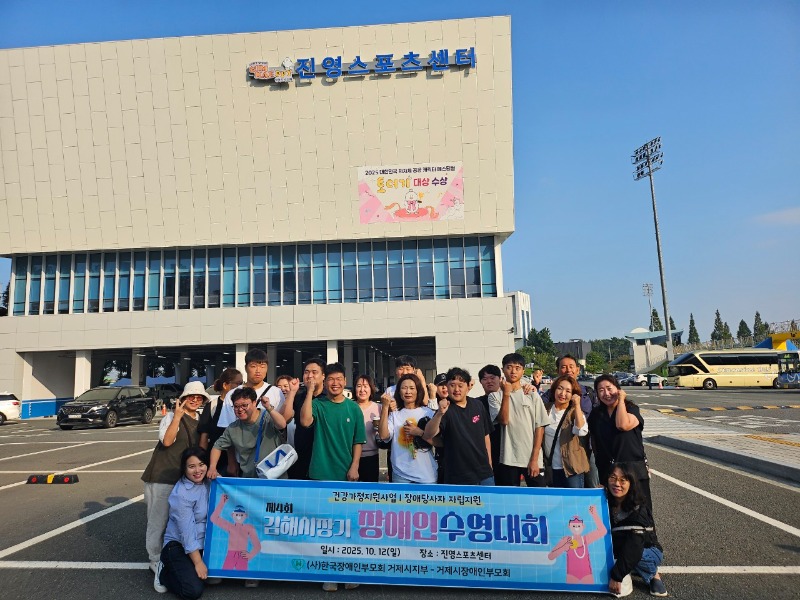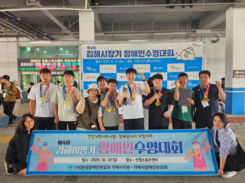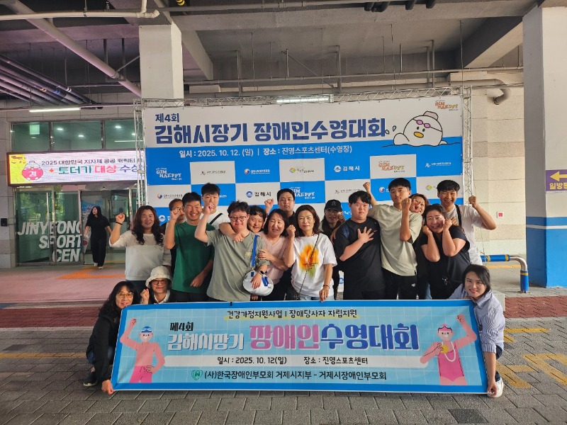 제4회 김해시장기 장애인수영대회 참가(거제시장애인부모회) 관리자 0 60 10.14 15:26 제4회 김해시장기 장애인수영대회 일 시: 2025. 10. 12.(일) / 장 소: 진영스포츠센터수영장