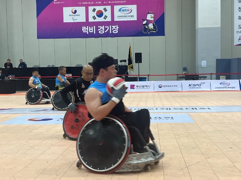 제 45회 전국장애인체육대회 출전(휠체어럭비) 관리자 0 8 11.01 15:42 제45회 전국장애인체육대회 (휠체어럭비) 일 시: 2025. 10. 31. ~ 11. 05. / 장 소: 벡스코 제2전시장